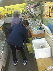 下田地区では、到着するとおばあちゃんが待っておられました。いつもリュックを担いで来られます。今日もたくさん買い物をしてリュックに詰めて歩いて帰られました。