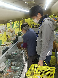 舞原第二団地では、毎週訪問しているおばあちゃんが「大根をもらったのでおでんをしたい」と言われ、練り物、こんにゃく等を買われました。