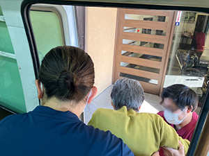 舞原第二団地ではずっと留守にされていたおばあちゃんが10ヶ月ぶりに帰っておられ、近所の方が元気カーまで知らせに来られました。今日は娘さんが付き添っておられ、お元気そうでよかったです。