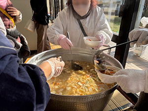 餅の他に豚汁とぜんざいをしました。こちらも好評でした。団地の皆さんに喜んでいただきよかったです。