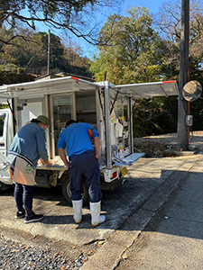 球磨村松本地区、神瀬地区、大瀬地区で、見守り活動を含む移動販売を行いました。