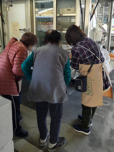 相良町災害公営住宅では、陰になる場所で強風のため極寒でした。みなさん手早く選ばれていました。まだ利用し始めたばかりの方も、コンスタントに来てくださりリピートしていただけています。