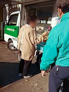 数か月ぶりのお母さんに顔を見せていただきました。すごく元気そうで、「デイサービスに行ってる時間だからなかなか来れんかった~」などとお話しいただきました。びん牛乳ノンホモ、舞茸と小松菜の肉みそ炒めセット、黒棒名門、他をご購入いただきました。