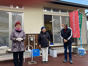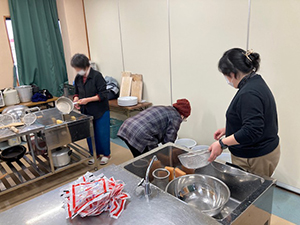・朝倉被災者をみまもり隊メンバーで、グリーンコープ甘木店の調理室にて餅つきの準備を行いました。