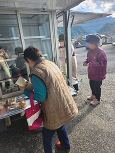 立野地区では、ゼリーやお惣菜、お菓子、パン、野菜を買われました。冬ギフトの手土産企画だった商品を食べられ「美味しかった。お土産にしたい」と3個注文をいただきました。