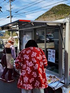 蔀地区では、1名の方の買い物が終わられると、もう1名の方がサロンから帰って来られ買い物をされました。お菓子を購入され、近くの畑仕事をしている方に差し入れをされていました。