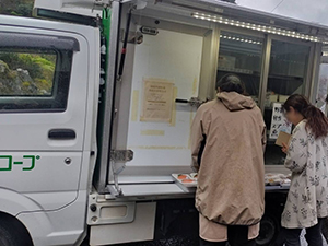 球磨村松本地区、神瀬地区、大瀬地区で、見守り活動を含む移動販売を行いました。