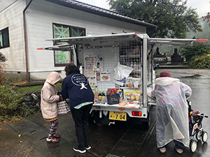 球磨村公営住宅、球磨村各地区で、見守り活動を含む移動販売を行いました。