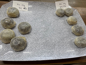 2月末に益城町で開催される「芋フェス」に出店するためにいきなり団子の試作をしました。切った芋を水にさらしたり、芋を包む生地を寝かせたりと結構時間がかかります。芋の厚み、あんの重さ、生地の重さ等均一にできるようにいくつかのパターンで作りました。出来上がりはとてもおいしくできました。