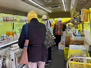 乙女団地では、毎回来られる女性の方が買い物を終わった後にずっとおしゃべりされていました。そして、「今年になってお父さん(ご主人)以外の人と初めてしゃべったので止まらなくてごめんなさい」と仰ったので、「いいえ、いっぱい話していいですよ。ストレス解消になりますから」とお応えしました。