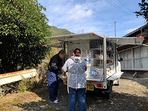 球磨村公営住宅、球磨村各地区で、見守り活動を含む移動販売を行いました。