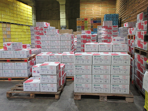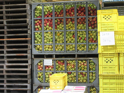 冷蔵庫で冷やされ、出荷を待つりんごたち