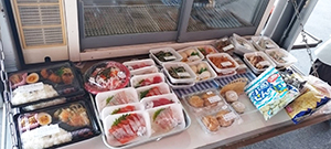 宮園地区では、定期購入のヨーグルトと息子さんがお気に入りのお菓子を買われました。飛び込みで、工事現場の方がちらし寿司、お惣菜を買われました。