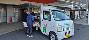 公営住宅エスペランサ桜峯では、到着前から待っていて下さった方や、予約の方、初めての方の来店がありました。予約の商品やお惣菜をたくさん買われました。お惣菜、お刺身、びん牛乳はほぼ売り切れでした。