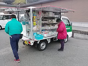 「トイレットペーパーありますか~?」と住宅に住んでいらっしゃるお母さんから声をかけていただき、「お久しぶりですね~」などとお話しさせていただきました。野菜かりんとう、トイレットペーパーをご購入いただきました。