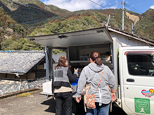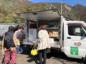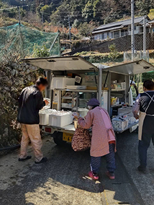 球磨村公営住宅、球磨村各地区で、見守り活動を含む移動販売を行いました。