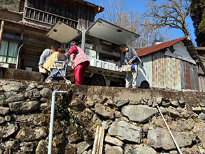大坂間地区では、たくさんお買い物されました。ご自宅まで購入品を届けると、豪雨災害の時の話をしてくださいました。「忘れてはいけないね」と言われました。