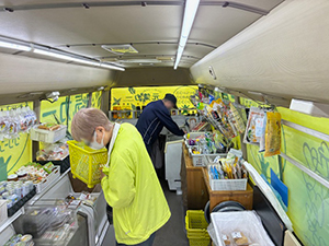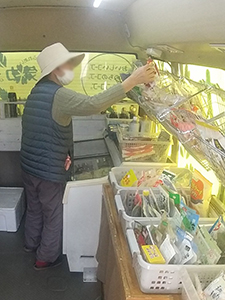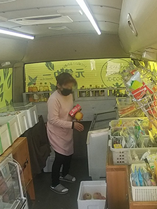 立野地区では、常連の方のご主人が来られました。「病院に行っていないので」と奥さんの書かれたメモを見ながら買い物されました。