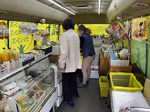 砥川団地では近所の方が初めて来られて「検診車と思っていたら移動販売車だったのね」と仰り、お買い物されました。ぜひまた来ていただきたいです。