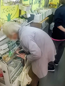 馬水団地では、見守り訪問しているおばあちゃんは、こちらで商品を選んでお届けしています。近所の方が「インスタントばかり食べている」と言われたので、できるだけお惣菜、野菜、果物等を届けるようにしています。