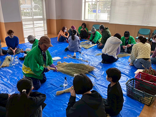 体験田交流の1年を締めくくる新米試食会・しめ縄リース作りを、今年も無事開催できました。初めて参加する人も多く、皆さん生産者に教わりながら熱心に取り組んでいました。予想以上の難しさに苦戦する姿も見られましたが、完成したしめ縄を手に嬉しそうな笑顔が印象的でした。しめ縄を作ったあとは、体験田交流で収穫した甘くてつやつやの新米おにぎりを試食。その美味しさに驚きの声があがっていました。赤とんぼ米の安全性と美味しさを実感してもらうことができたと思います。よい年を迎えられますように。