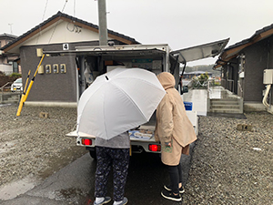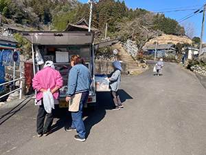 球磨村松本地区、神瀬地区、大瀬地区、大坂間地区で、見守り活動を含む移動販売を行いました。