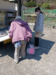 沢見地区では、お2人買いに来られました。いつも決まったものとお惣菜やお菓子などを買われました。
