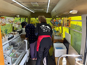 宮山地区のお一人は、今回初めて利用の方でした。「移動販売が来ているのは知っていたが、時間が合わなくて来れなかった」とのことでした。びん牛乳を買われましたので、今後も継続利用いただけるとよいなと思います。
