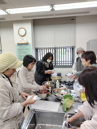 魚が食卓に並ぶことが少なくなった現在、改めて海の環境の変化も感じました。「魚の缶詰は非常食としても普段使いでも便利。魚缶詰は丸ごと食べられ骨の心配をしなくてよい」等の感想もでました。今回、アレンジ調理を試食して、手軽に使っていきたいと思いました。タイのパンツも色鮮やかで肌触りのよさも分かりました。