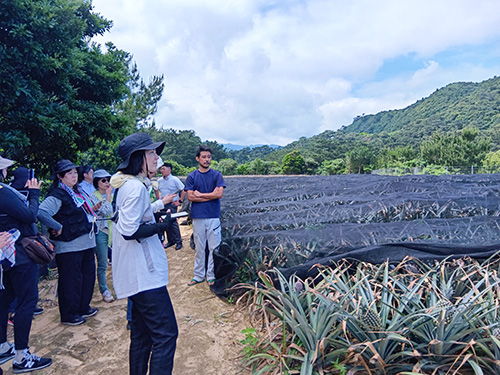 パインの圃場にて生産者の當間さんよりお話を伺いました