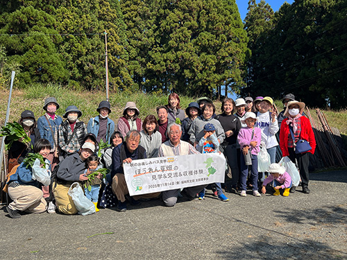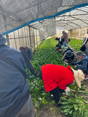 バスが満員になるほどの申し込みで、美しい小石原の紅葉に囲まれながら楽しく交流ができました。畑に青々とおいしそうなほうれん草が育っているのを見て「本当にありがたい」と涙ぐむ参加者もいました。夏の暑さや虫や鹿との格闘もありながら、丁寧に手をかけて出荷してくださっている思いが伝わり感動し、これからも応援したい気持ちが強まりました。