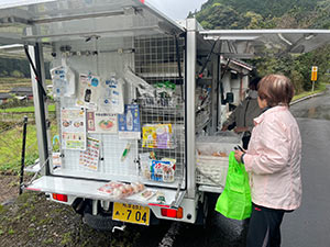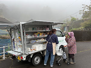 球磨村松本地区、神瀬地区、大瀬地区、大坂間地区で、見守り活動を含む移動販売を行いました。