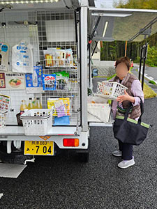 沢見地区では、納豆や牛乳などいつもの商品を買われました。マヨネーズを希望されましたが、瓶だと伝えると「やっぱりいつもの絞れる方がよか」とのことでした。