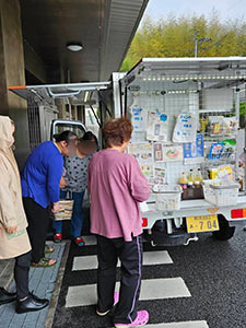 人吉市内の仮設団地と災害公営住宅、球磨村各地区で、見守り活動を含む移動販売を行いました。