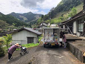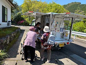 球磨村公営住宅、球磨村各地区で、見守り活動を含む移動販売を行いました。