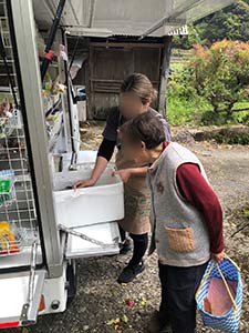 野々原地区では、近所の方が初めて来られました。お孫さんと一緒に見られ、アイスやお刺身を買われました。