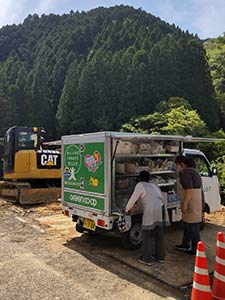 球磨村一勝地地区(宮園、柳詰、田代、野々原、黄檗、岳本、中渡、日隠)、人吉市下原田第一・第二仮設団地で、見守り活動を含む移動販売を行いました。