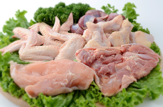 産直の豚、若鶏は一般よりも長期間飼育しています。時間をかけて肥育することで、旨み成分イノシン酸が増えておいしい肉になります。