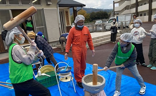 朝倉市の公営住宅で、年末恒例の「餅つき」を開催(グリーンコープ生協ふくおか)