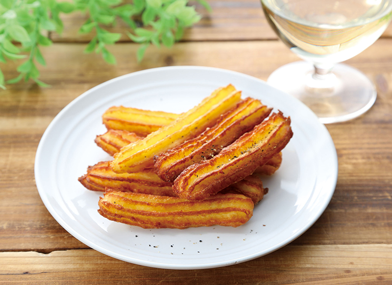 - 油を170℃に熱し、(3)をクッキングシートごと入れて、きつね色になるまで揚げる。油を切って熱いうちにブラックペパーをまぶす。