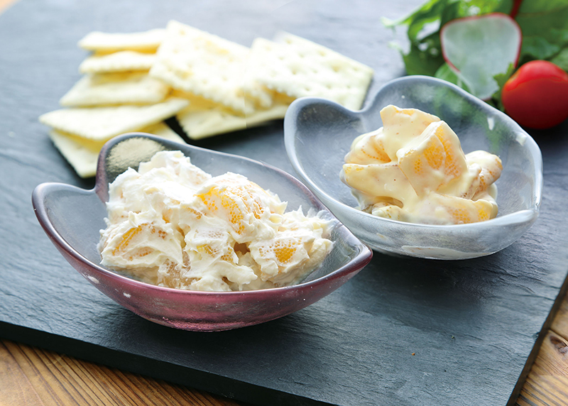 - ボウルにクリームチーズを入れ柔らかくなるまで練り、味付数の子(半量)を手で食べやすい大きさにちぎりながら加え、よく混ぜる。ボウルにわさびとマヨネーズを入れてよく混ぜる。味付数の子(残りの半量)を手で食べやすい大きさにちぎりながら加えよく混ぜる。