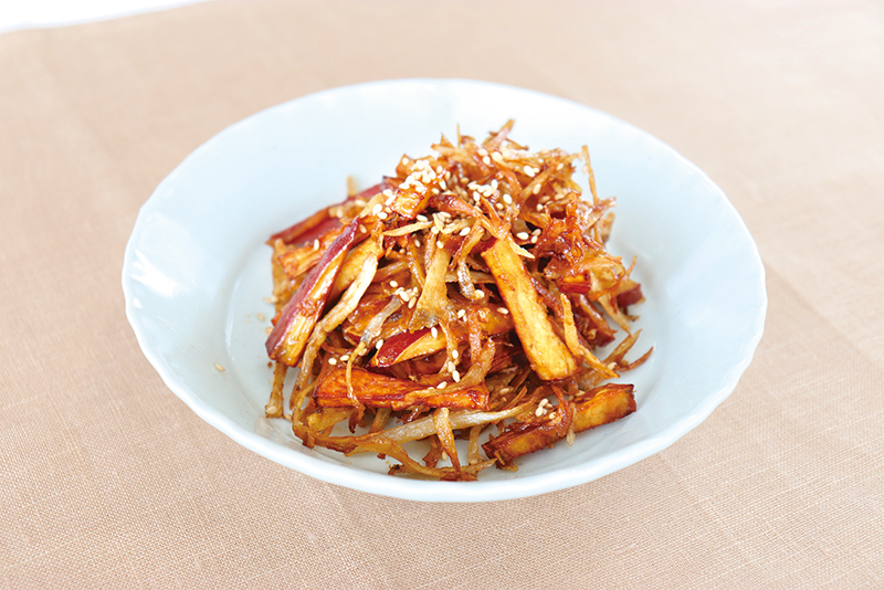 ※食物繊維たっぷりのごぼうと、旬のさつま芋を甘辛く炒めた、手軽にできる1品です。ごぼうは2度揚げするとサックリ、カリッと上がります! 1年A.Kさん