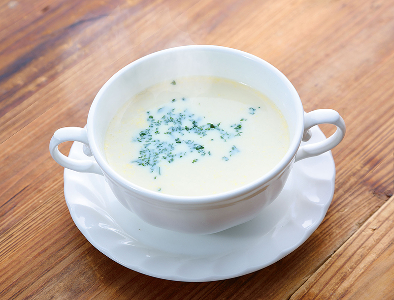 - (1)に塩を加え味を調えたら、器に盛りパセリを振る。